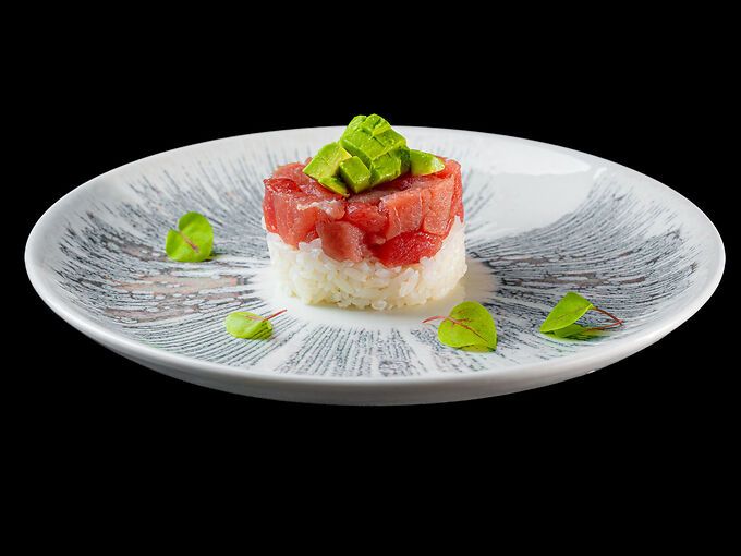 Tartar di tonno su riso bianco