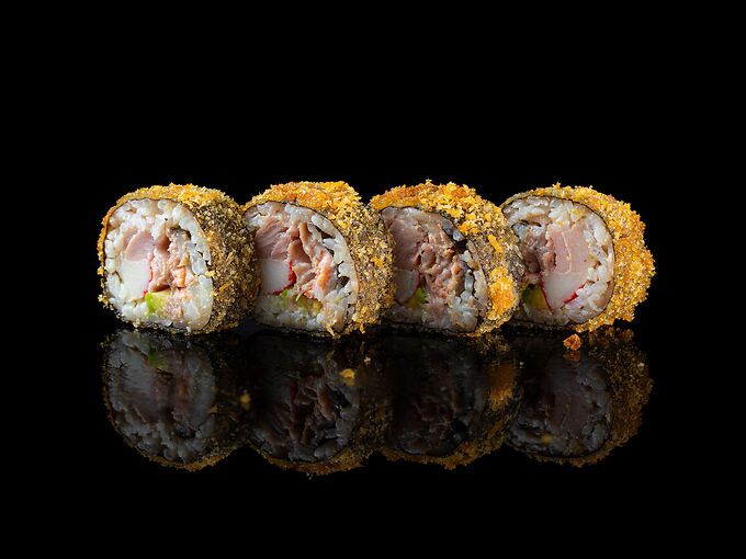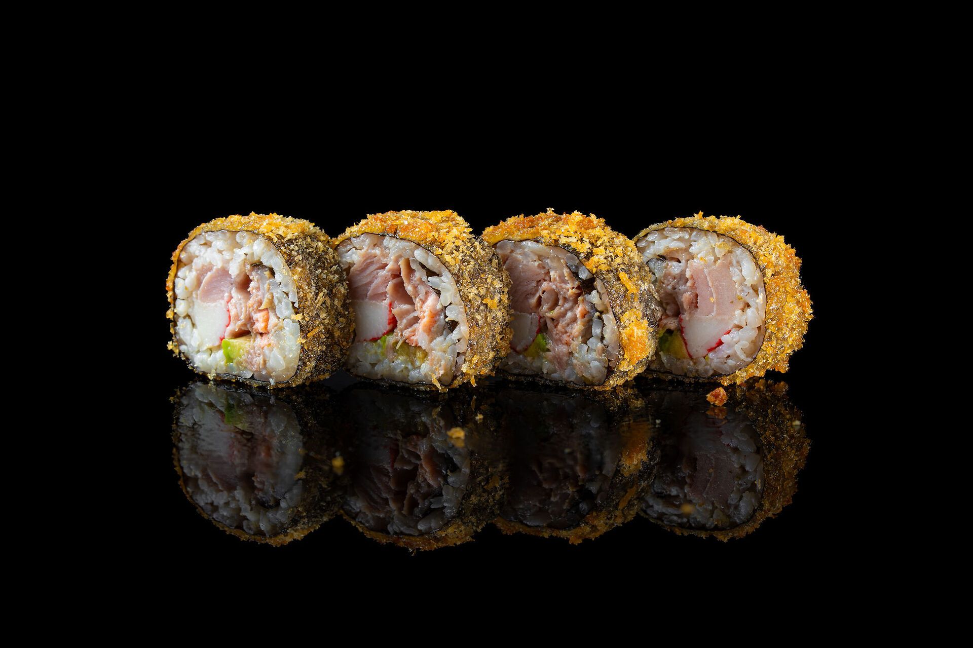 Salmone, philadephia, tonno, surimi, avocado, kataifi, pangrattato e salsa Teriyaki