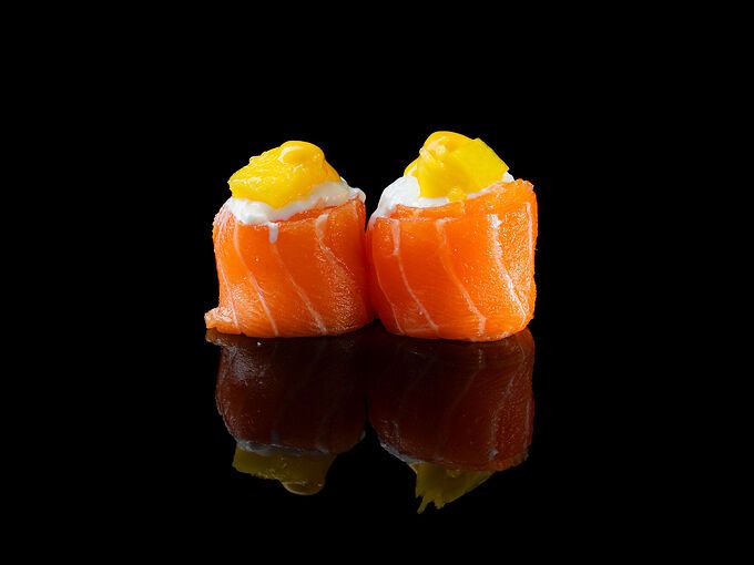 Riso, salmone, stracciatella, mango e salsa mango