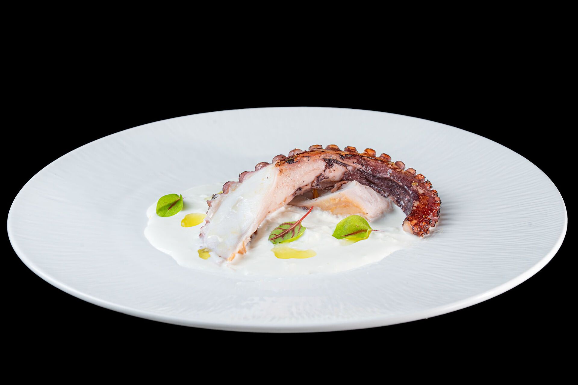 Polpo su salsa bianca (panna, latte, caciocavallo) e olio d'oliva